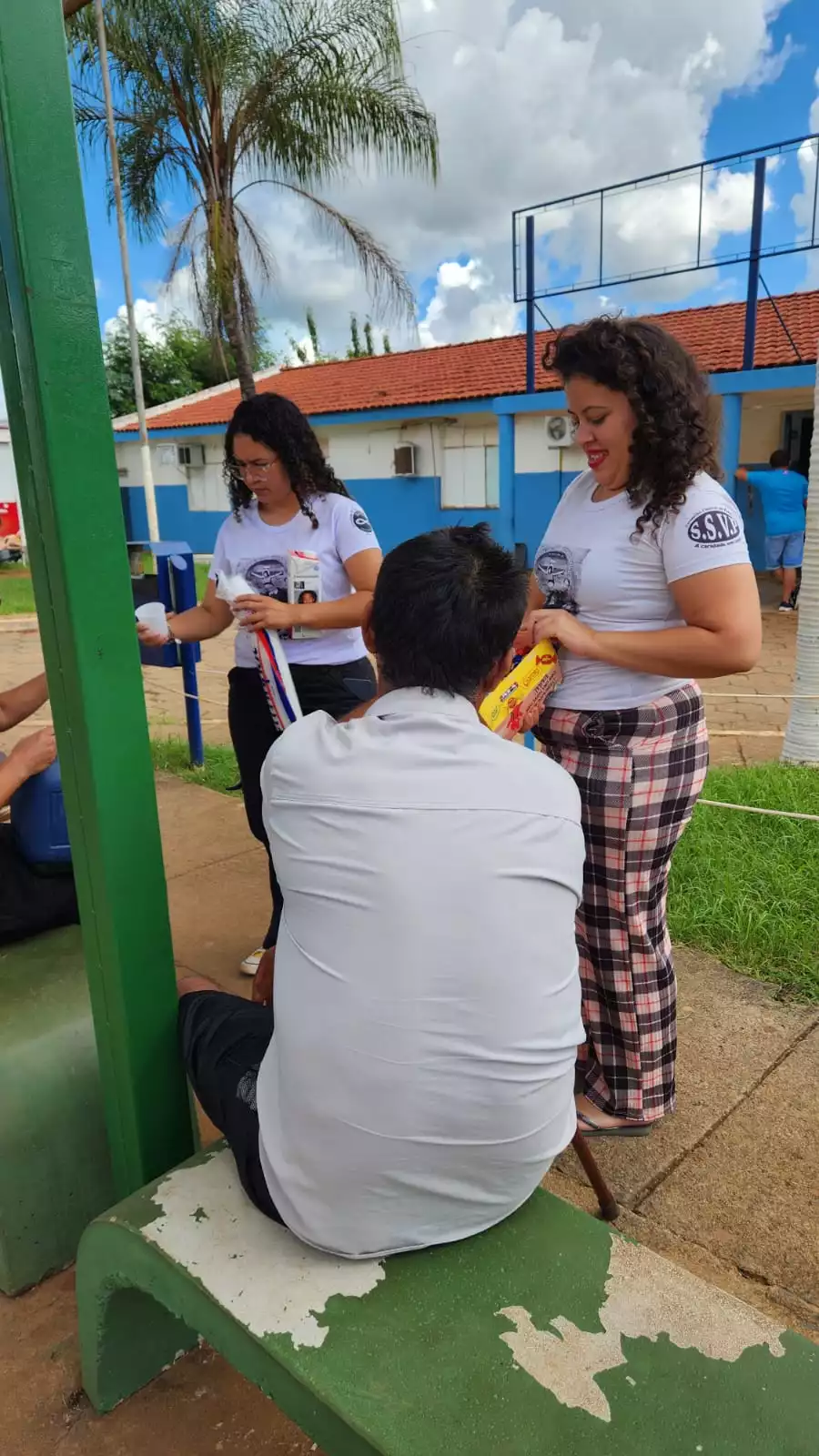 Foi servido café e chocolate aos pacientes, acompanhantes e profissionais da saúde, respeitando sempre as orientações médicas e oferecendo apenas àqueles que podiam consumir os alimentos, sem restrições de saúde.