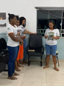 A consocia Mayssane proclamou a leitura espiritual, o Evangelho do dia. Felizes os humildes de Espirito/porque deles é o Reino do Céus (Mt 5,3), seguido da oração do terço da Sagrada Família. Encerramos o momento partilhando um lanche.