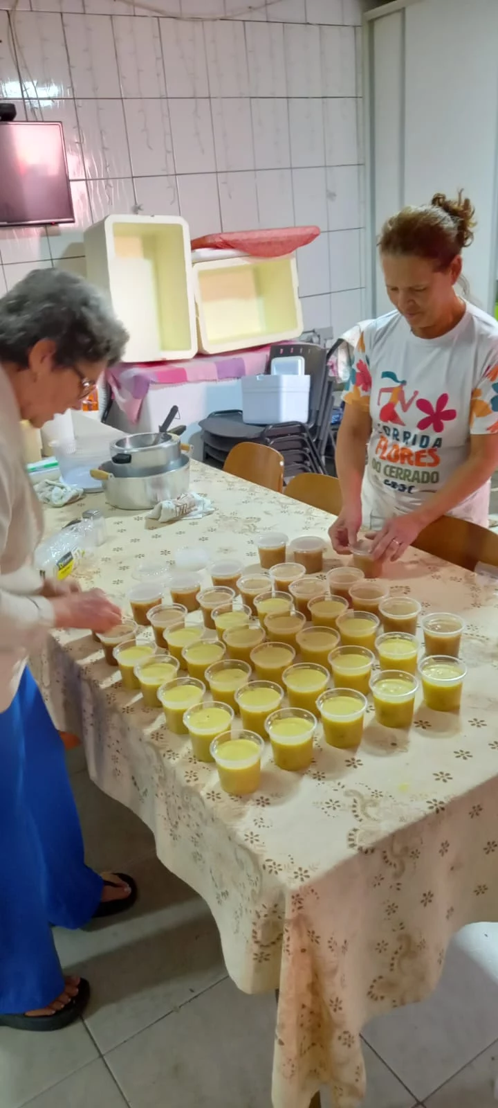Ação social, no dia 07/07/2025 foram feitos 50 potes de caldo de frango e costela, que foram entregues as famílias carentes e moradores de rua no Setor P Sul e Por do Sol.