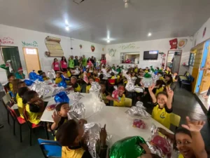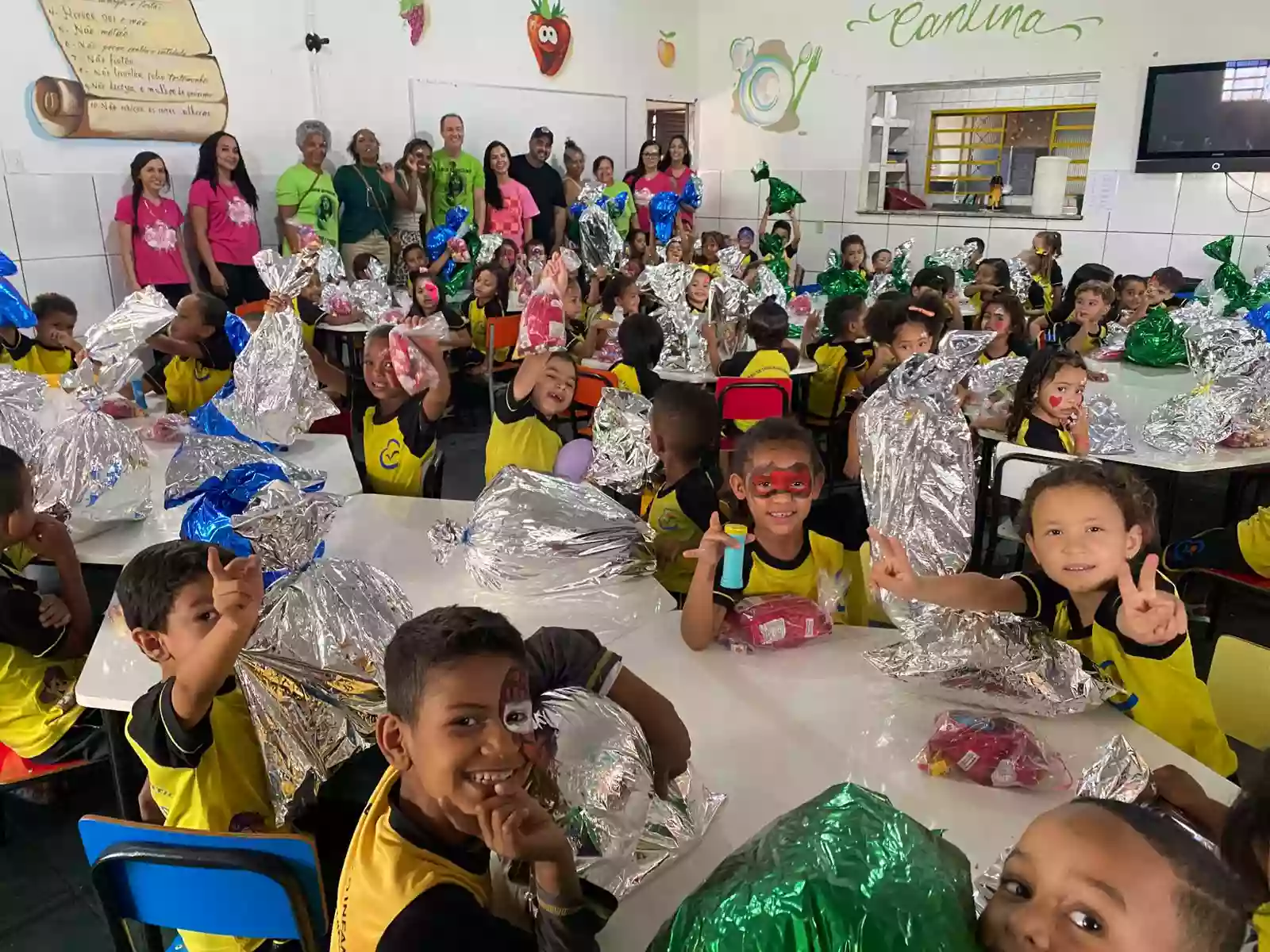 No dia 11/10/2025, foi realizada visita à creche em comemoração do dia das crianças com entregas de brinquedos, doces, bolos, brincadeiras, maquiagem nas crianças e muita alegria.