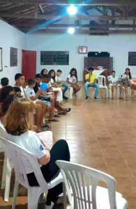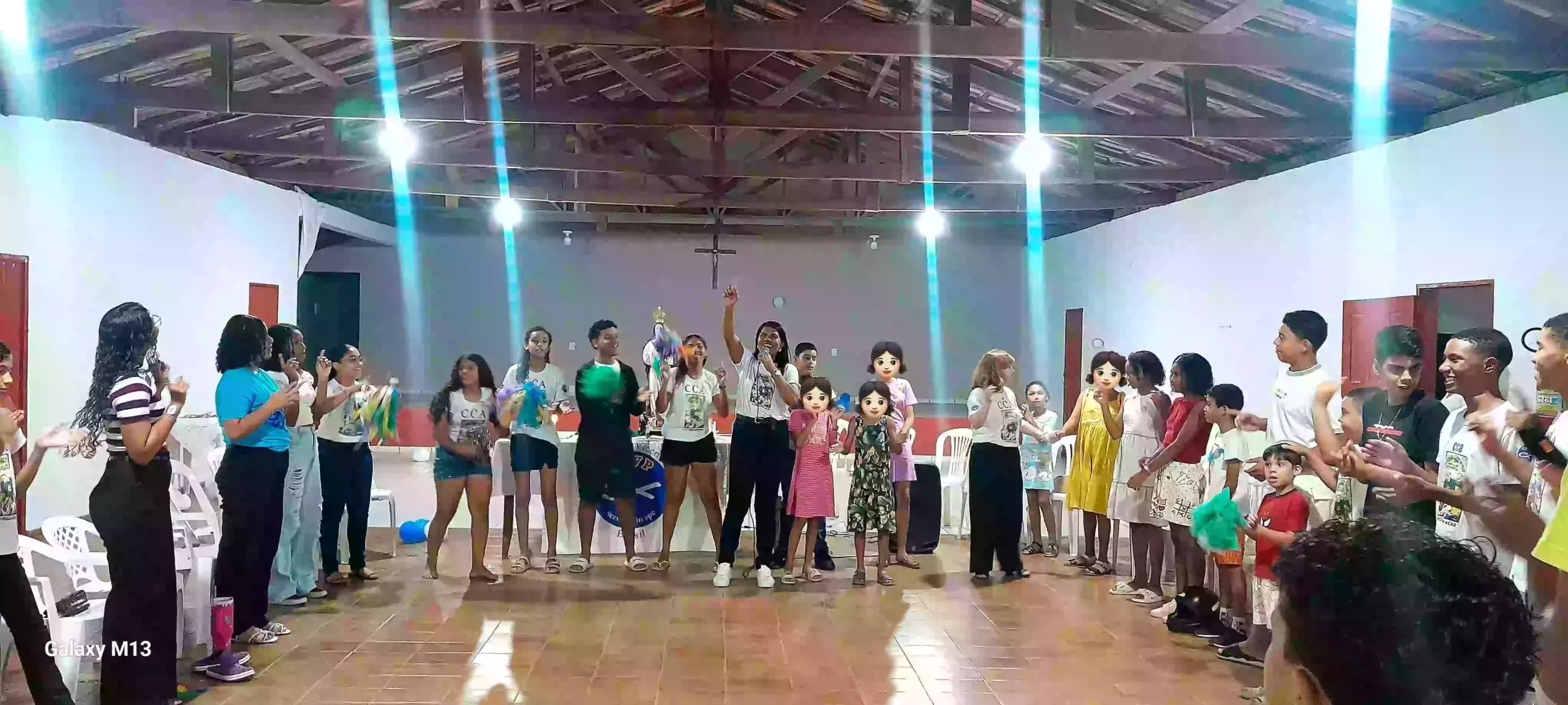 Na noite do dia 15 de outubro de 2025, às 18h30, o Salão Paroquial foi palco de um momento especial de fé, união e aprendizado durante o encontro motivacional da Conferência Santo Antônio Galvão de Crianças e Adolescentes, promovido pelo conselho particular São Mateus de Campos Belos-GO.