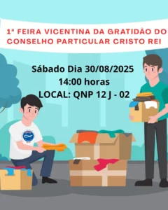 Durante o mês de agosto, o confrade claudiimar vem sempre divulgando as atividades vicentinas como o horário e dia da reunião do conselho, terço , proclamação de novos vicentinos e outros trabalhos, convidando sempre a participação de todos, se possível pelo menos um membro de cada conferência.