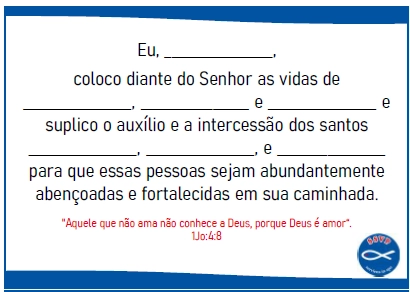 A consócia Élyda apresentou a história “A Fábula da Tocha e da Vela”, convidando os participantes a refletirem sobre a força das pequenas ações de amor que iluminam discretamente, mas de forma duradoura. Cada participante recebeu uma vela, que foi acesa a partir da vela central — simbolizando Cristo — para recordar que a missão cristã é refletir Sua luz com humildade. No momento de compromisso espiritual, a consócia Aureni convidou cada participante a escolher três santos e três pessoas não familiares pelas quais irão rezar ao longo da semana, registrando os nomes no cartão entregue, como gesto concreto de caridade espiritual.