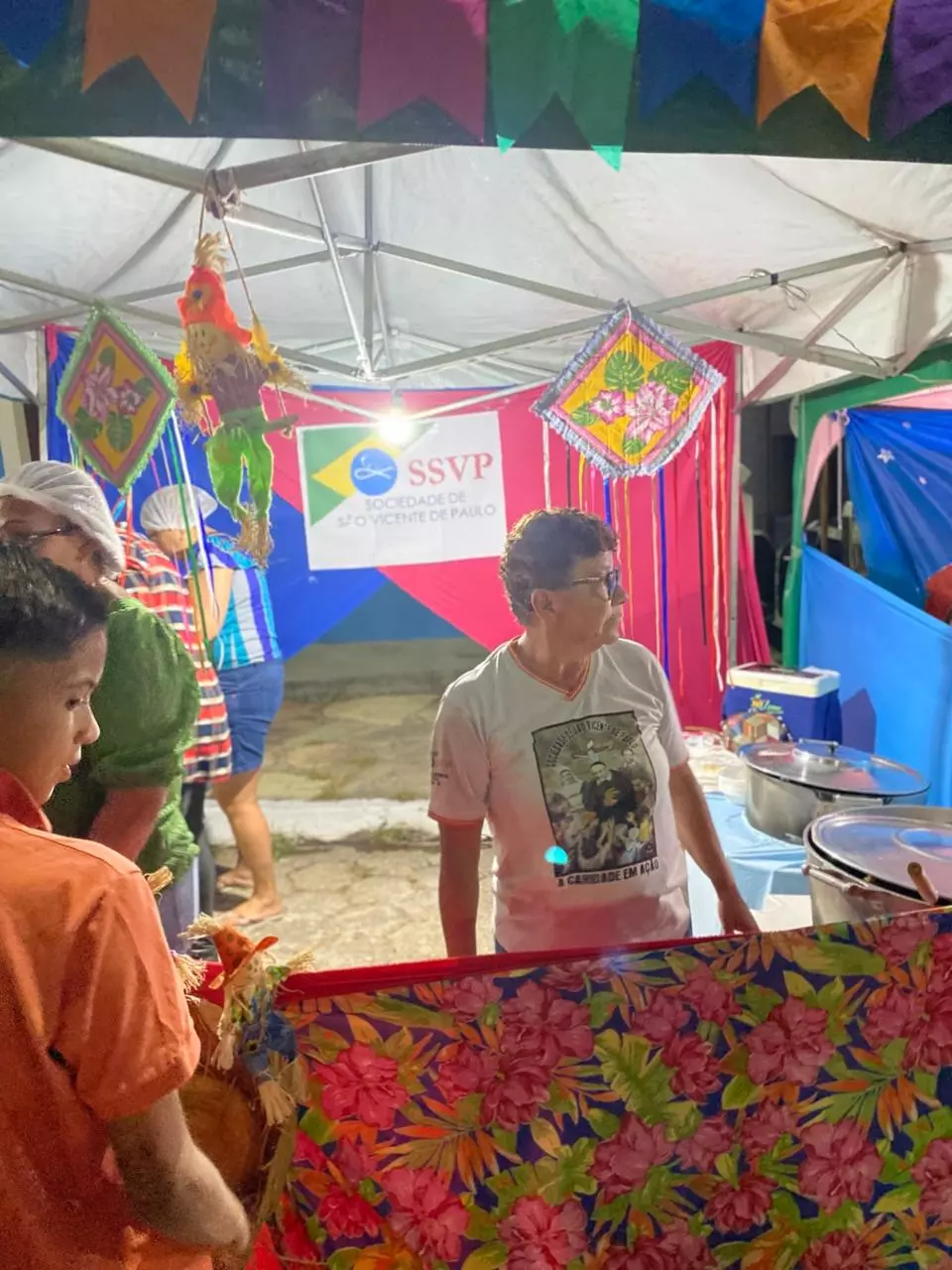 O momento foi animado por um cantor local. Cada grupo confeccionou sua barraca de comidas típicas. Participamos com quase todos os membros das conferencias. CCA ficou responsável pela belíssima apresentação da dança puxada por mim presidente do conselho.