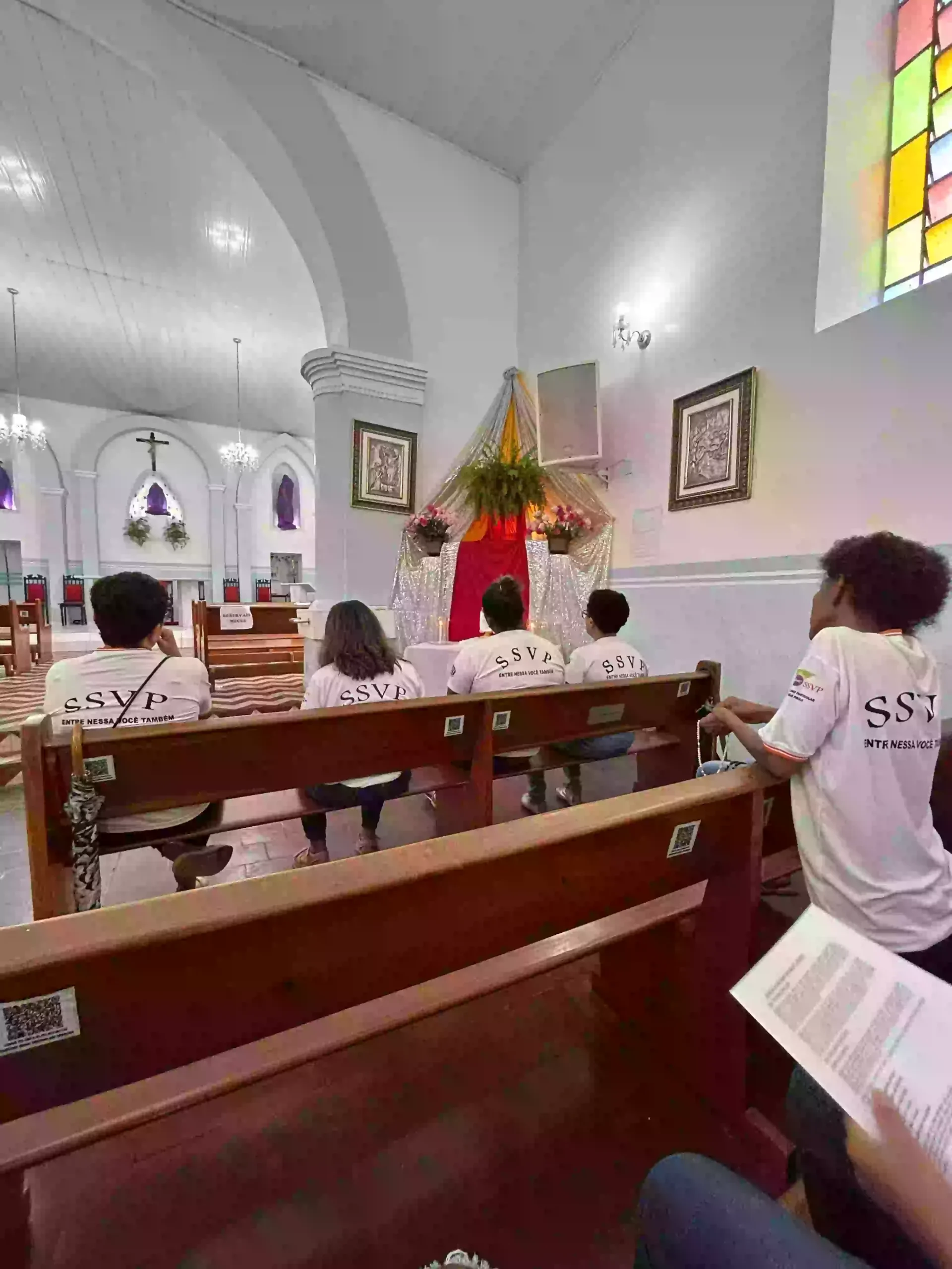 No dia 18 de abril, reunimos na Matriz para adorar e contemplar Jesus Eucarístico. A oração do Santo Terço foi um dos momentos de grande espiritualidade e compaixão. O evento contou com a presença de cerca uns 20 vicentinos de todas as conferências ligadas ao Conselho Particular São Paulo e por ter sido realizado na Matriz estiveram presentes também pessoas da comunidade. Contemplamos os mistérios do terço com intenções voltadas ao enfrentamento de injustiças e desigualdades que afetam os mais necessitados da nossa comunidade.
