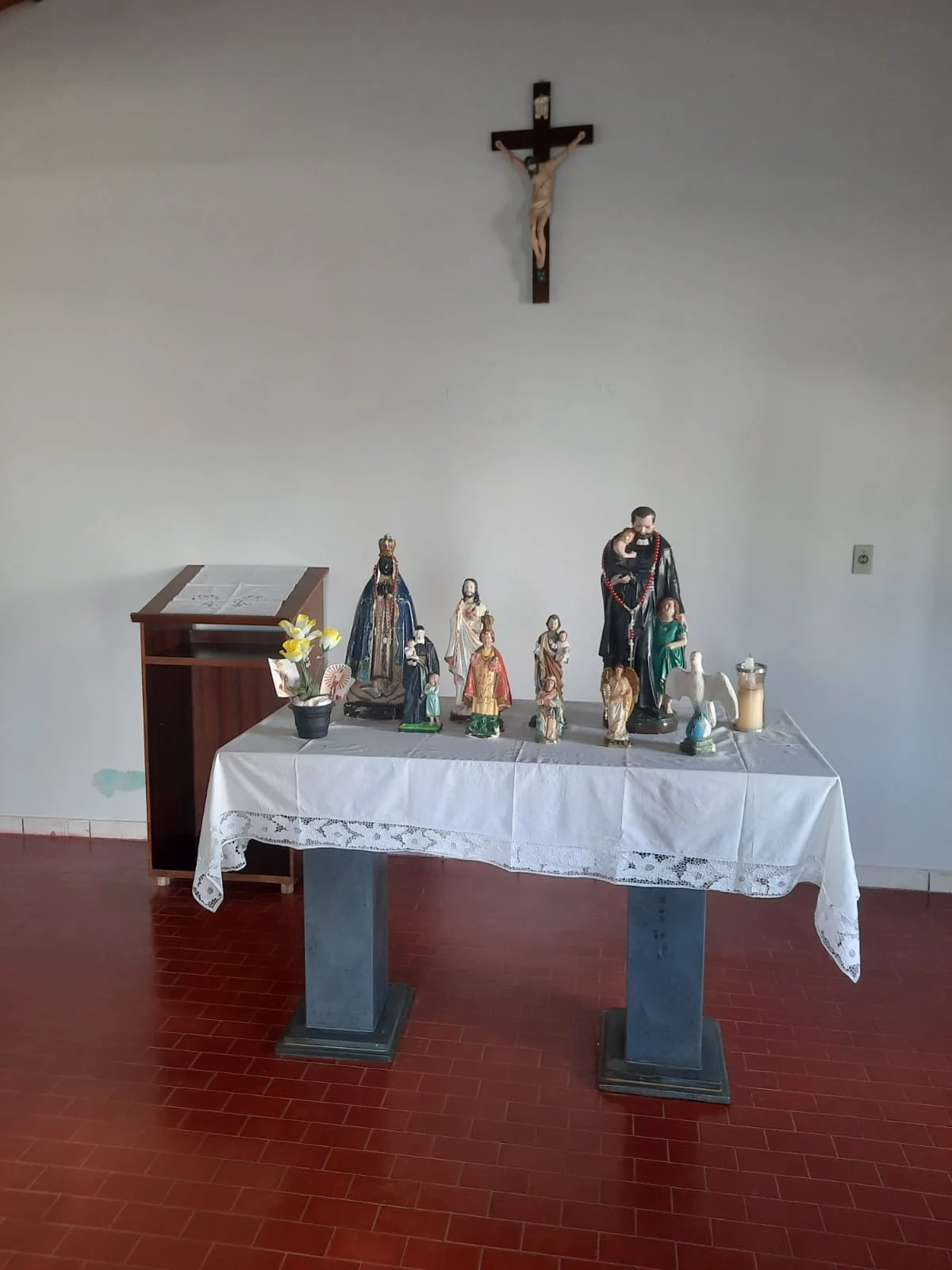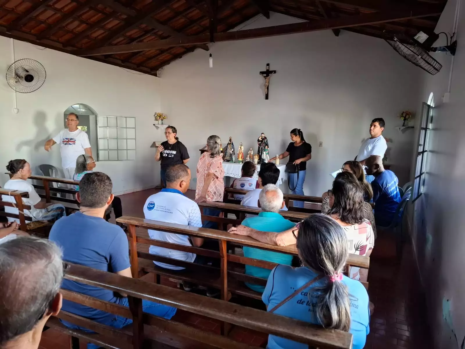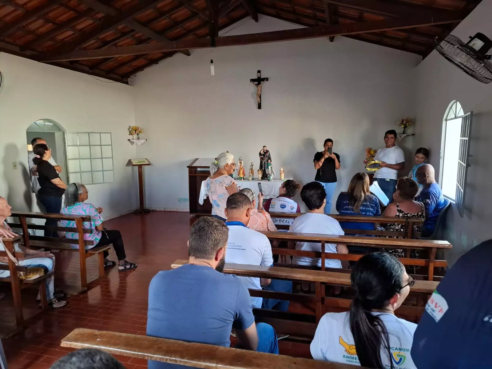O terço foi rezado na Capela do Tamboril, com acompanhamento de sons de violão e cantoria de temas religiosos nos intervalos dos mistérios. No final do terço, a comunidade se reuniu para partilhar o momento e celebrar o encontro com um café da tarde, com chá e mais refrigerantes, acompanhados com pães de queijo e bolos.